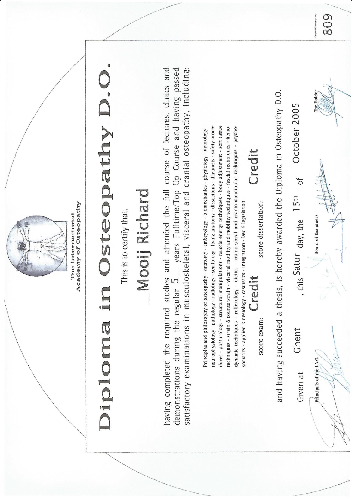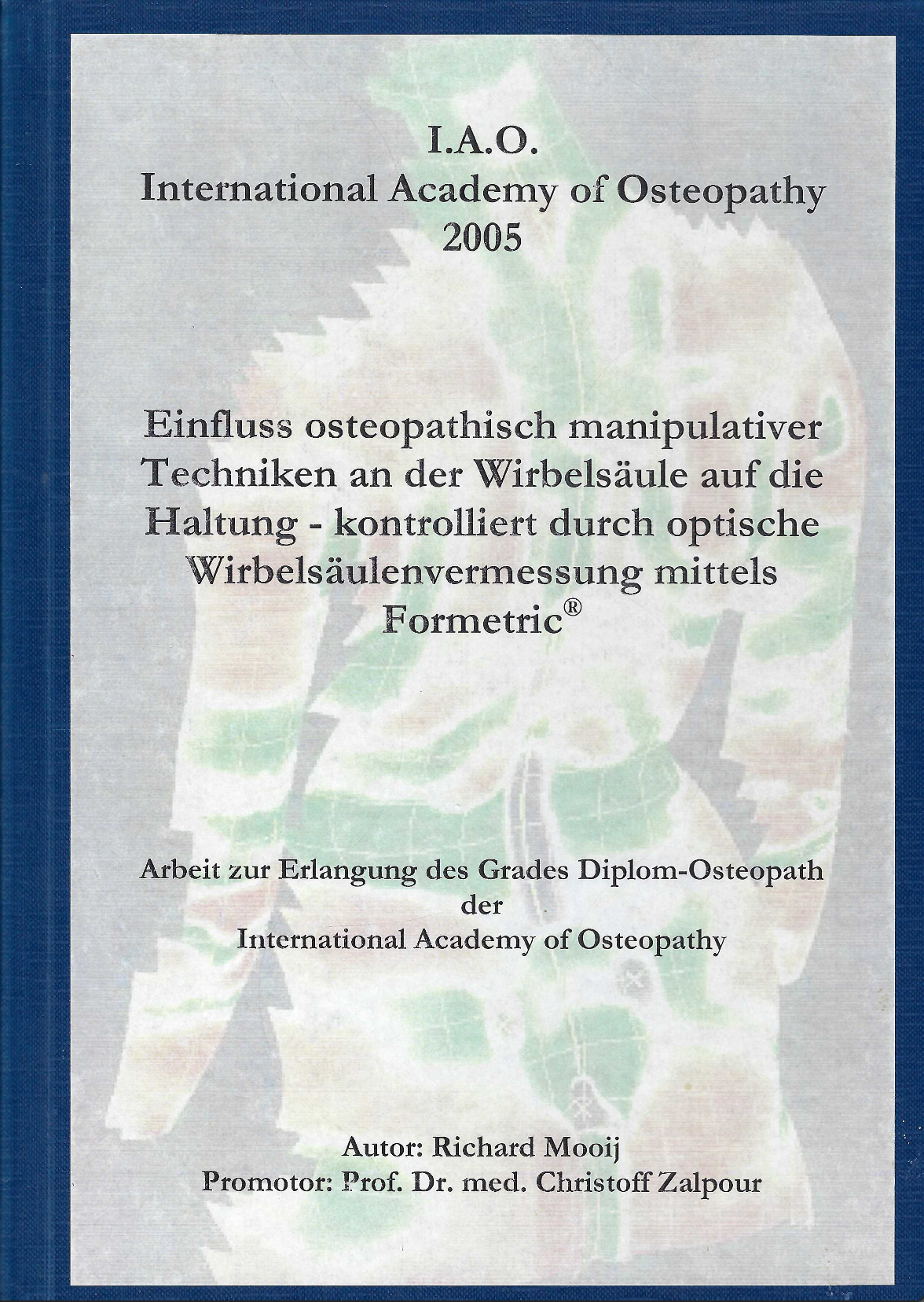 Meine erste osteopathische Ausbildung absolvierte ich 1997-2003 bei der International Academy of Osteopathy (IAO) in Deutschland, Belgien und den Niederlanden. Ich erlangte das Diplom nach meiner Diplom-Arbeit 2005.