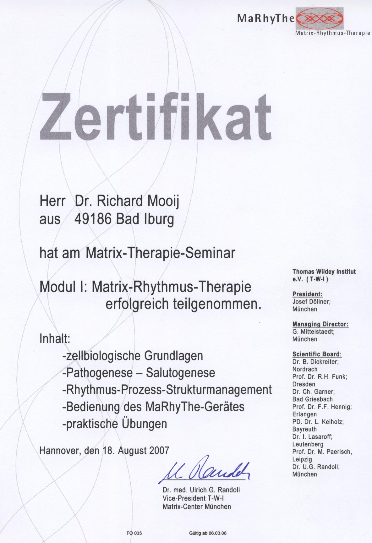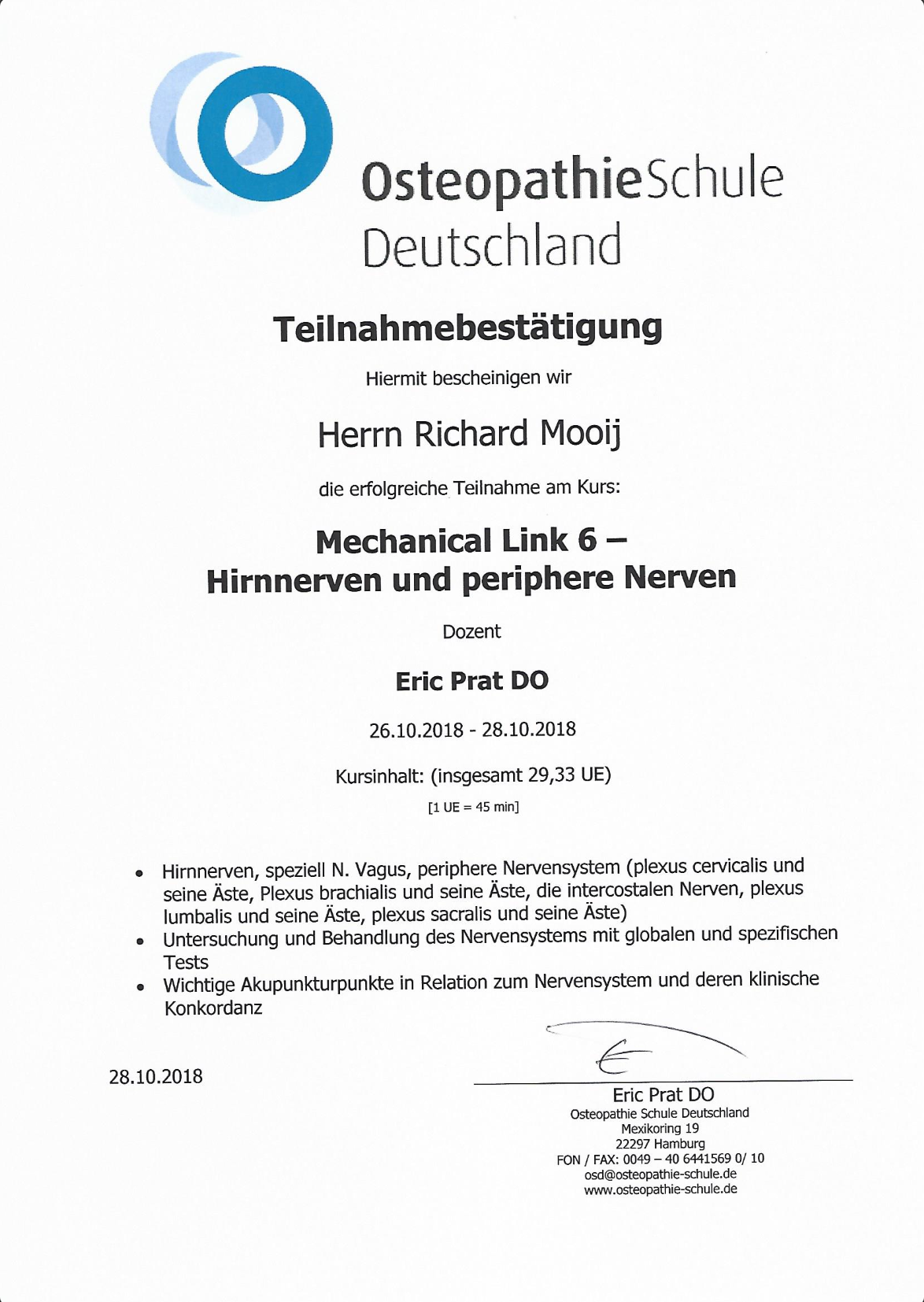 Als osteopathischer Arzt habe ich mit voller unbegrenzter ärztlicher Zulassung die national anerkannten akademischen und beruflichen Standards in Deutschland erreicht, die Diagnose und Therapie der Osteopathischen Medizin zu praktizieren.